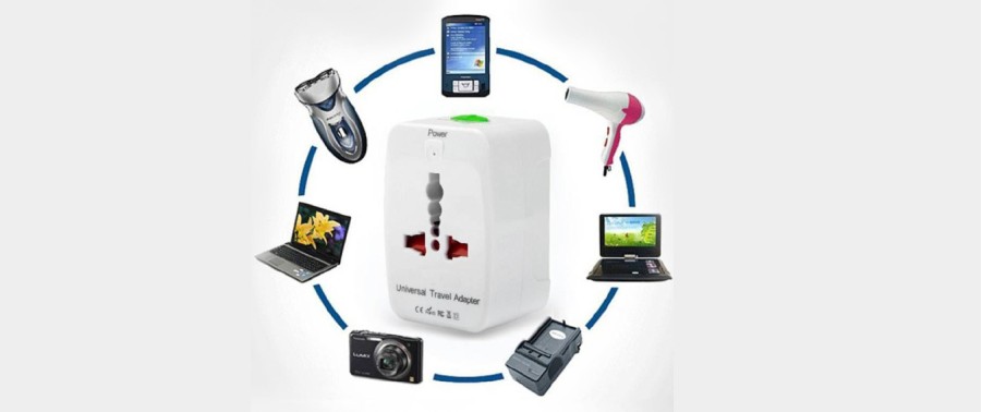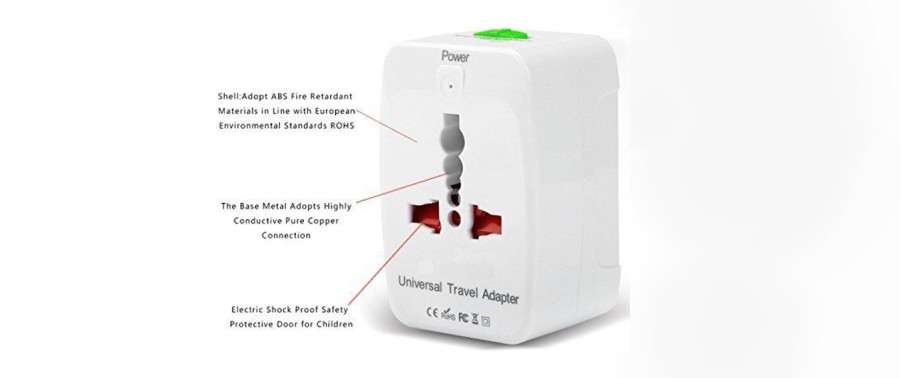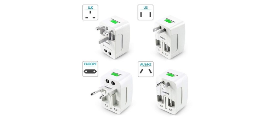 This universal adapter is a compact one piece unit with 4 international adapters,
