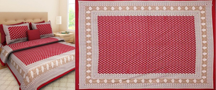 Dress your bed in style with the versatile and attractive range of Exotica King Size Double bedsheets from Super Deals For MONIK HANDICRAFTS . The Jaipuri-printed bed sheets feature traditional-themed floral patterns in lively hues. Also, the 100 percent cotton fabric ensures skin-friendliness, easy washability and color-fastness. The world has known fewer other pleasures to match the pampering comfort of a welcoming bed at home. A fine fusion of both comfort and design- this vibrant and ethnic range of bed sheets is all you need for a restful sleep this summer. The bedsheet cloth is unstitched at two ends giving you freedom to use the way you want, a specialty of Jaipuri Bedsheets. Wash Care: Machine/Hand Wash with Mild Detergents. Do not Bleach and wash separately for the first time.