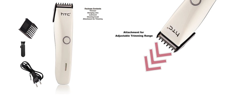 This cordless trimmer from HTC is a stunning piece. Grab this trimmer and enjoy hassle-free grooming experience at home. Easy to Use this trimmer ensures ease of use, thanks to its ergonomic design. So look dashing and trim your beard and your underarms and be party-ready always. A Must-Have Grooming Kit This trimmer is not just a device used for trimming. It comes with a number of other attachments which will ensure that you look groomed. Its stainless steel blade and free floating head will give you a complete and clean trim without cutting or damaging your skin. Rechargeable whether you are at home or holidaying, with this trimmer in handy, you don???t have to worry about looking shabby as this trimmer is rechargeable and can be carried along with you wherever you.