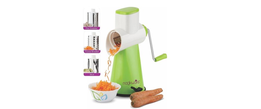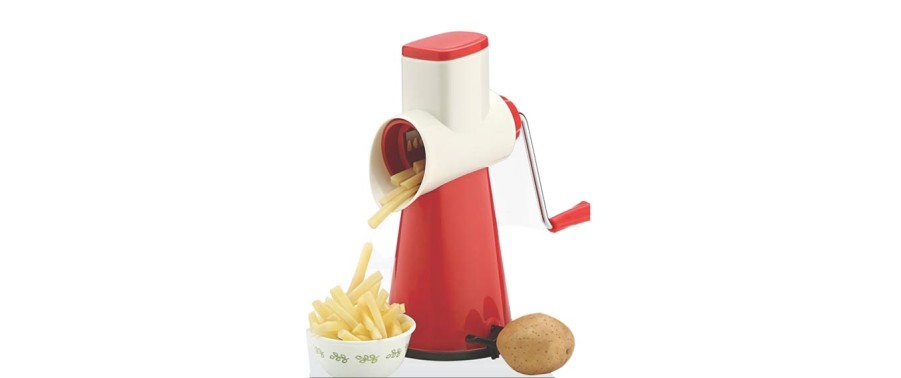 Your Choice 12-in-1 Fruit and vegetable slicer is a simple to use kitchen tool to help you prepare food quickly and in various styles without hassle. The 12-in-1 can be used to shred or grate cheese, vegetable, chocolate and nuts, creating even slices, vegetable salads, different cuts and decorative riffles.